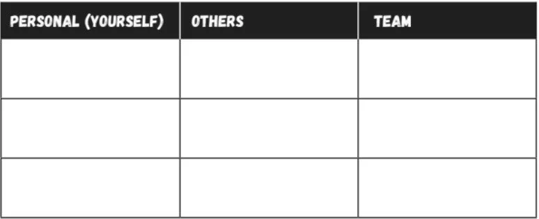 Make a chart for the three kinds of accountability: personal (yourself), others and team.